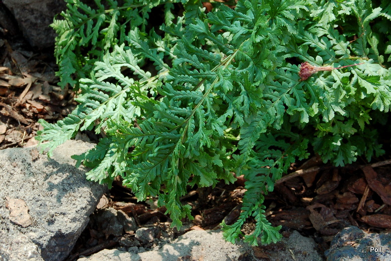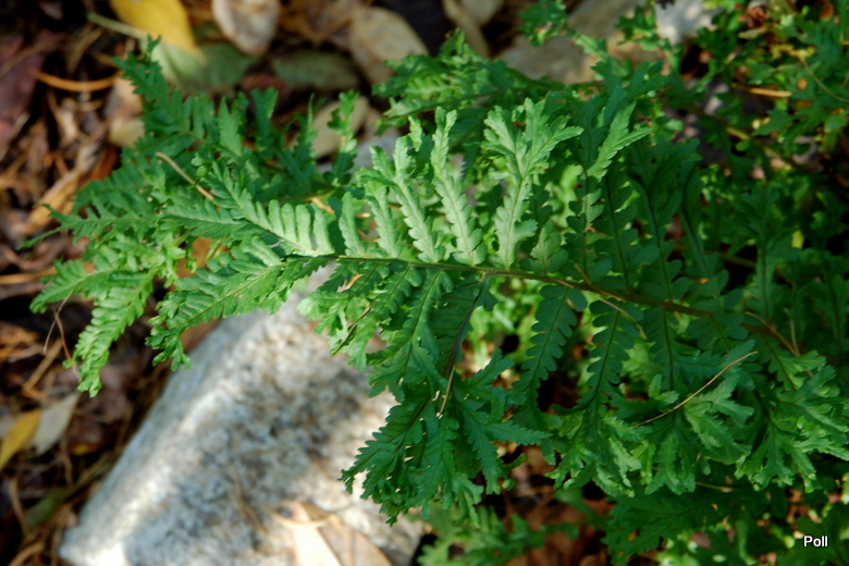 bardzo ciężkimi, rozbudowanymi w kilku płaszczyznach grzebieniami kończącymi każdy liść. Rozszczepienia obserwujemy też na końcach osadek listków, ale są one sporo mniejsze, nie tak dramatyczne i ciężkie. Grzebienie nadają całej kępie nieco dziwną, rozczochraną, ale ciekawą formę, zwłaszcza, że długość frondów dochodzi do