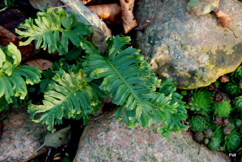 Czasem spotyka się w obrocie tę paprotkę pod synonimem Polypodium australe 'Cristatum'.