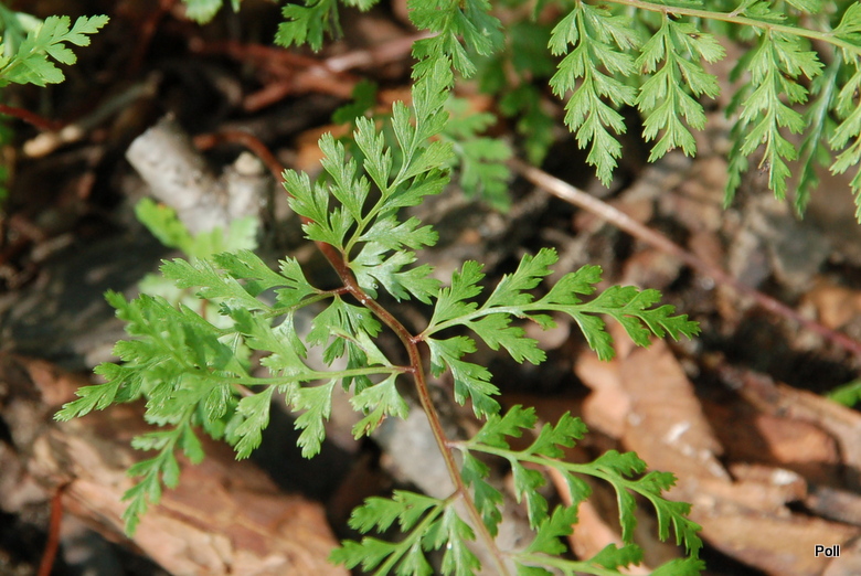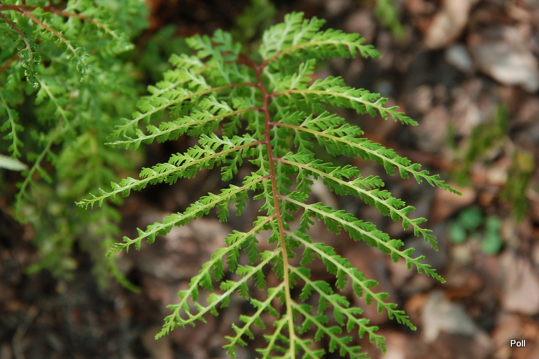 wietlica samicza. Jasnozielone, lekko pierzaste listki położone są mijankowo, parami, na wyraźnie czerwonych osadkach a ich wierzchołki mogą być czasem rozszczepione, tworząc 2, lub 3 ząbki. Zarodniki są ukryte pod spodem liści i osłonięte brązowymi zawijkami o kształcie litery J, lub U.