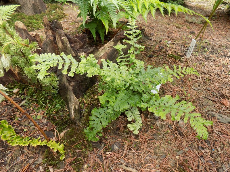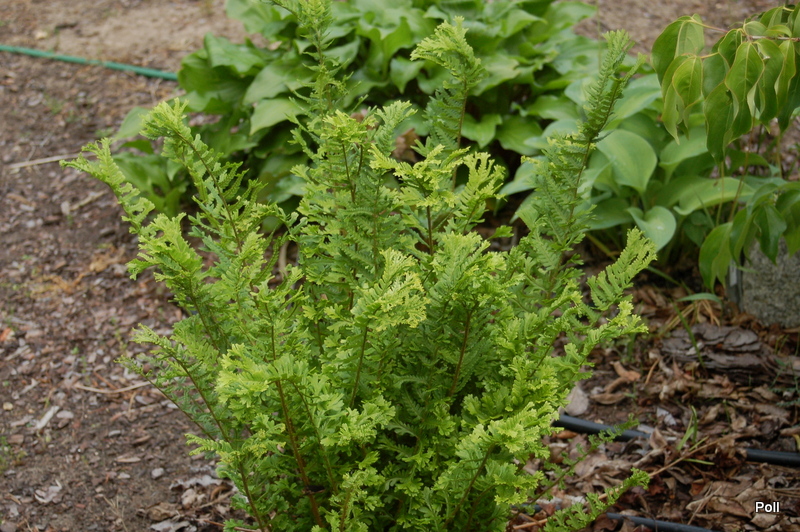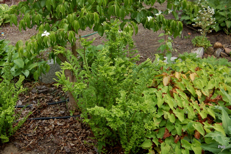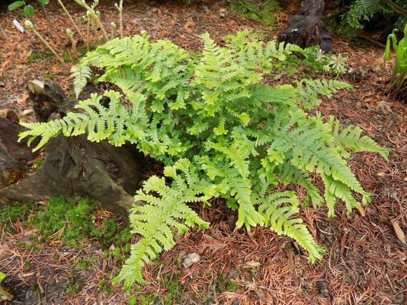 Dryopteris filix-mas 'Cristata Jackson' na półcienistym, wilgotnym stanowisku