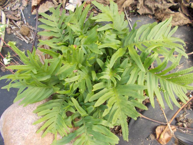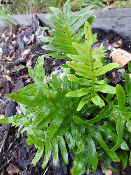 Polypodium), odmiana ta rozprzestrzenia się przez pełzające pod ziemią kłącza, z których wyrastają zimozielone, stosunkowo szerokie frondy, o