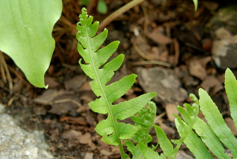 Paprotka walijska 'Carew Lane' późno, bo w lipcu wypuszcza pierwsze pastorały i rozwija z nich liście (fot.13.07.)