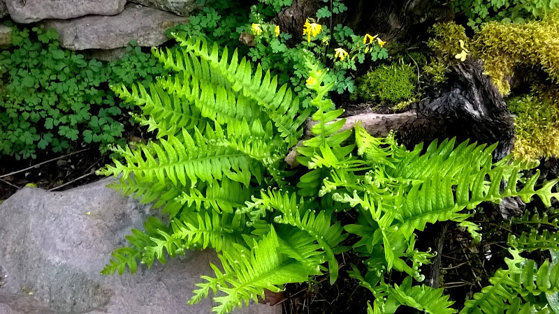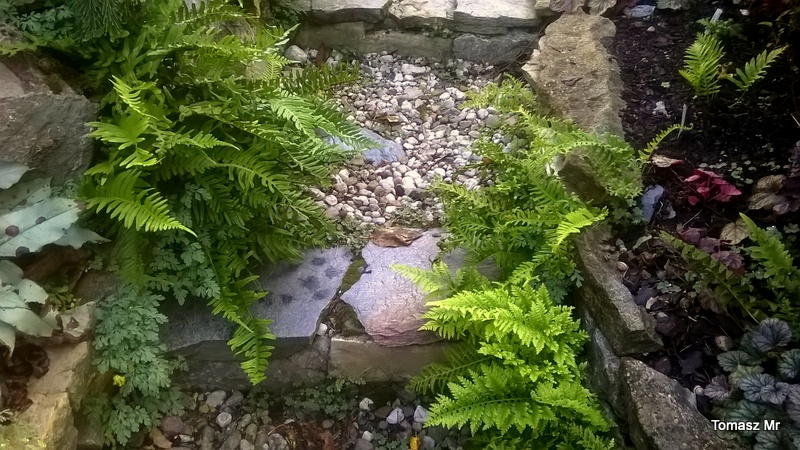 Mimo dość późnej pory, odebrałam kilka sadzonek od paprotki pośredniej i wysadziłam w różnych miejscach, które wydawały mi się kamienno-bezduszne. Uwielbiam widok paprotek zwieszających się z pomiędzy kamieni