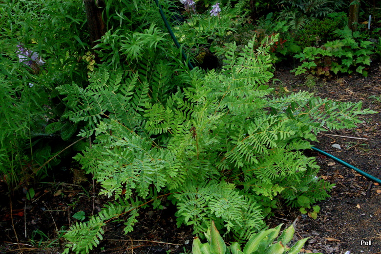 Osmunda regalis var. spectabilis , czyli American Royal Fern na półcienistym, mocno podlewanym stanowisku