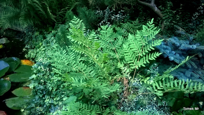 Z lewej strony Osmunda regalis var. spectabilis , z prawej Osmunda japonica . Rosną już kilka lat, ale ja nie widzę specjalnej różnicy...inna sprawa, że oglądam je z odległości kilku metrów,bo przeszkadza woda w oczku .