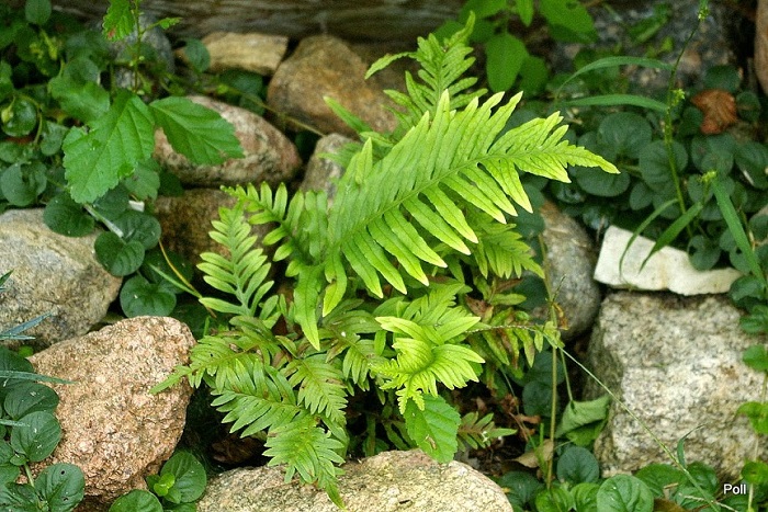Paprotka pospolita 'Ramosum Hillman' , na pierwszy rzut oka, nie różni się od gatunku . Ma takie same, zimozielone, nastroszone w górę frondy , tworzy podobnej ,