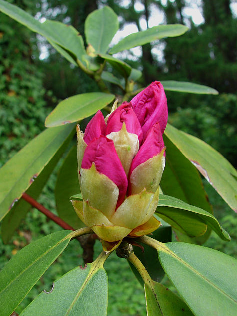 Selekcjoner: Hans Hachmann, Niemcy (wprowadzenie do handlu: 1975) Pokrój: szeroko wyprostowany, zwarty Siła wzrostu: szybka... po 12 latach dorasta do około 1,40 m wysokości i około 1,80 m szerokości Liście: eliptyczne, ciemnozielone Kwiaty: różowe, jaśniejące ku środkowi z wyraźnymi ciemnoczerwonymi cętkami na górnym płatku... średnica pojedynczego kwiatu od 5,5 do 7,5 cm... zebrane po 9-19 sztuk w zwarte, kuliste kwiatostany Termin kwitnienia: przełom maja i czerwca Mrozoodporność: do -25 °C (Hachmann)