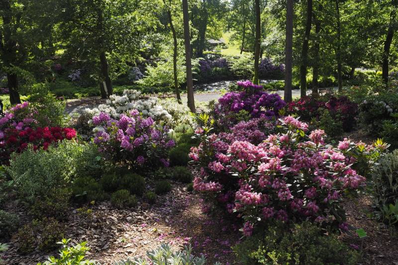 Oba różaneczniki Kokardia trafiły na dawne dno stawu, więc mają dość wilgoci pod stopami a jednocześnie dostęp do sporej ilości promieni słonecznych.