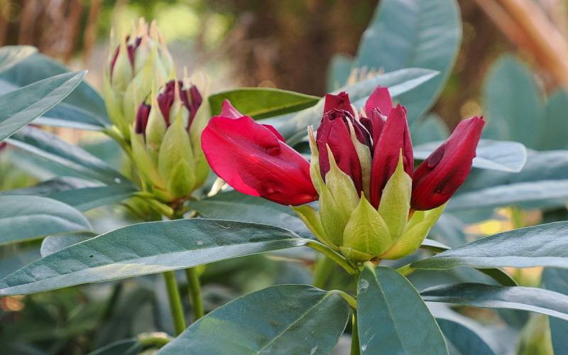 Kwiaty: w pąku purpurowo czerwone, po otwarciu purpurowo fuksjowe/ buraczkowe