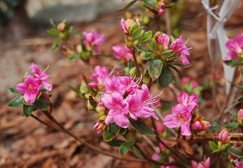 Pokrój i wielkość: krzew rozłożystym i zwartym pokroju, dorastający do 60 cm wysokości przy 90 cm szerokości (odmiana wolnorosnąca) Liście: drobne, ciemnozielone ( częściowo zimozielone). Kwiaty: pojedyncze; różowe, z ciemniejszymi plamkami na płatkach , szczególnie na górnym. (maj)