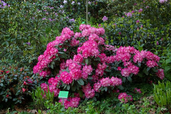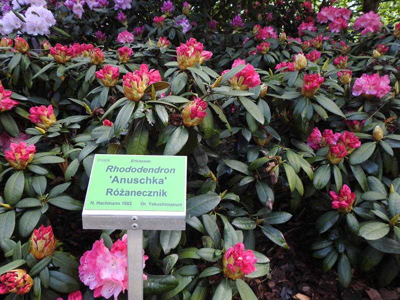 Różanecznik 'Anuschka' to odmiana słynąca z obfitego i niezawodnego kwitnienia. Tak prezentował się w pełni kwitnienia w Arboretum Wojsławice 20 maja