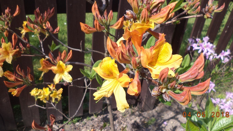 Kwiaty: w pąku pomarańczowe, po rozwinięciu pomarańczowo żółte z wyraźnym, ciemnopomarańczowym rysunkiem na górnym płatku... na zewnątrz nieregularnie, czerwonawo nabiegłe... duże, średnica pojedynczego kwiatu od 7 do 7,5 cm... zebrane po 15-17 sztuk w wierzchołkowe, kuliste kwiatostany