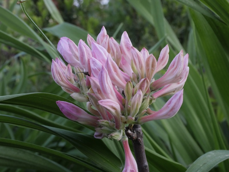 Kwiaty: w pąku różowe, po rozwinięciu bladoróżowe ze słabo zaznaczonymi, ciemnoróżowymi cętkami na górnym płatku... lejkowate... średnica pojedynczego kwiatu około 4,5 cm... zebrane po 6-8 sztuk w wierzchołkowe kwiatostany