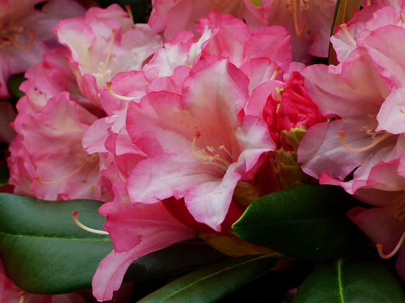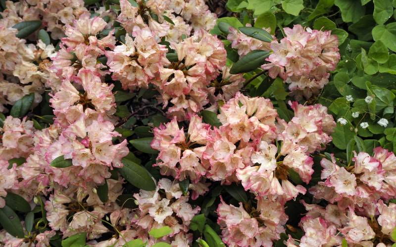Kwiaty: w pąku intensywnie czerwone, po otwarciu dwukolorowe, kremowożółte z czerwonawo wybarwionym brzegiem i nielicznymi, jasnożółto zielonymi cętkami na górnym płatku... wraz z upływem czasu kolor blaknie... brzegi płatków lekko pofalowane... stosunkowo nieduże, średnica pojedynczego kwiatu od 3,6 do 4,4 cm... zebrane po 15-17 sztuk w gęste, kuliste kwiatostany