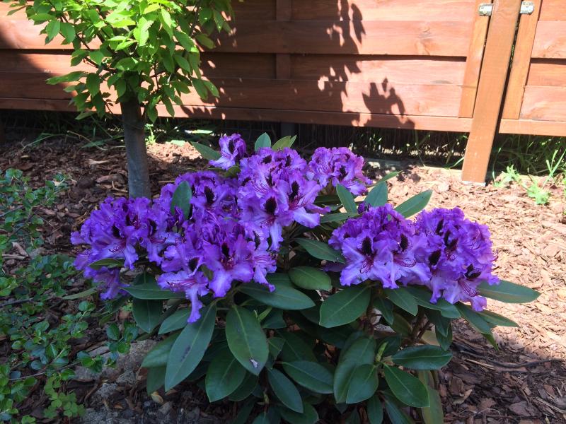 " Rododendron dorasta po 10 latach do ok 120-150cm, mrozoodporność do ok -22 °C, kwitnie w połowie maja".