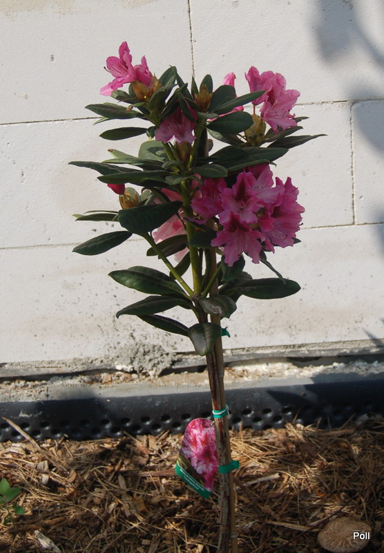 Kupiłam w ubiegłym roku egzemplarz na nodze. Nie przepadam za taką formą nie tylko różaneczników, ale w ogóle krzewów, jednak szczupłość miejsca wymogła na mnie taką decyzję. W późniejszym czasie 'noga' zostanie zasłonięta dużymi paprociami.