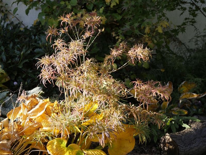 Na ten czas łapie jesienne kolory i widać, że zawiązała pąki kwiatowe