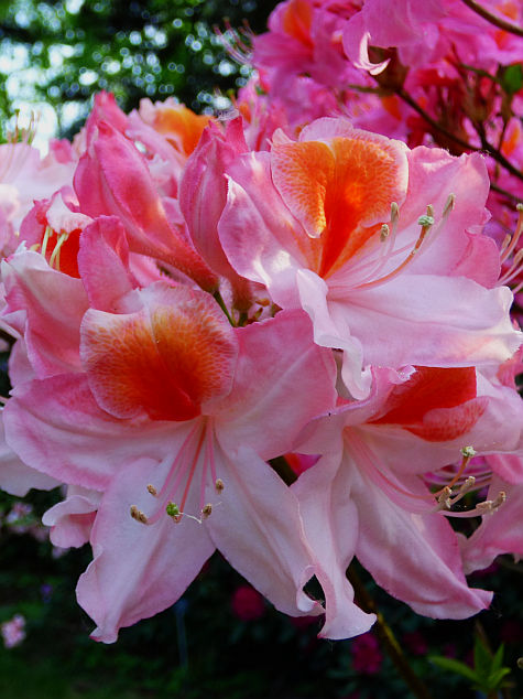 Selekcjoner: brak danych Pokrój: krzaczasty Siła wzrostu: brak danych Liście: sezonowe, jasnozielone Kwiaty: w pąku różowe, po otwarciu bladoróżowe z bardzo dużym, intensywnie pomarańczowo żółtym oczkiem rozlewającym się na trzech górnych płatkach... brzegi płatków lekko pofalowane... szerokolejkowate... duże... zebrane w kuliste, wierzchołkowe kwiatostany Termin kwitnienia: połowa maja Zapach: niewyczuwalny Mrozoodporność: brak danych