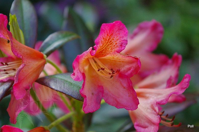 Pochodzenie: NN (wprowadzenie do handlu: 1975) Pokrój: gęsty, zwarty Siła wzrostu: roślina wolnorosnąca... po 10 latach dorasta do około 1 m wysokości Liście: ciemnozielone i błyszczące Kwiaty: w pąku czerwonawo pomarańczowe... po otwarciu wielobarwne, jasnopomarańczowe centrum z wyraźnym, winnoczerwonym rysunkiem na górnym płatku i czerwonawo różowymi, pofalowanymi krawędziami... lejkowate... zebrane po około 10 sztuk w wierzchołkowe kwiatostany Termin kwitnienia: połowa maja Mrozoodporność: do -18 °C (ARS)/ -21 °C (Salley & Greer) ---> zaleca się sadzenie tylko w cieplejszych rejonach kraju, na stanowiskach osłoniętych oraz okrywanie roślin na zimę
