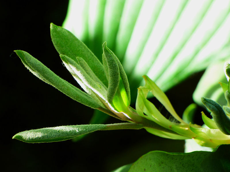 Zabezpieczone kutnerem, młode listki 'Weissenburga' w coraz śmielszej odsłonie zwyc