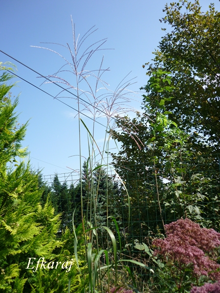 U mnie w ogrodzie, miskant Rosi rośnie trzeci rok ...i to jak rośnie! Gleba, to w zasadzie żółty piach, bo trawowisko powstało na terenie dawnego boiska do piłki plażowej. Kupiony jesienią 2016, zaskoczył mnie bardzo dynamicznym wzrostem, bo już w ubiegłym roku osiągnął wysokość około 2 metrów.