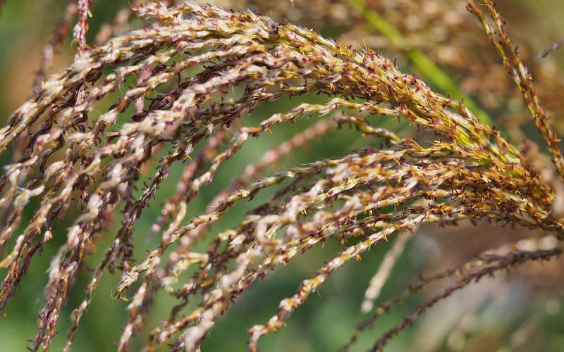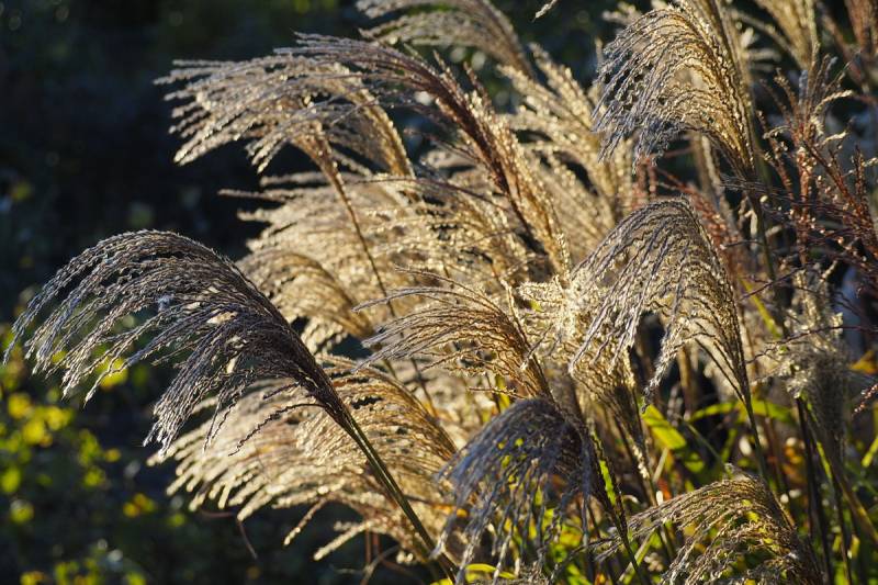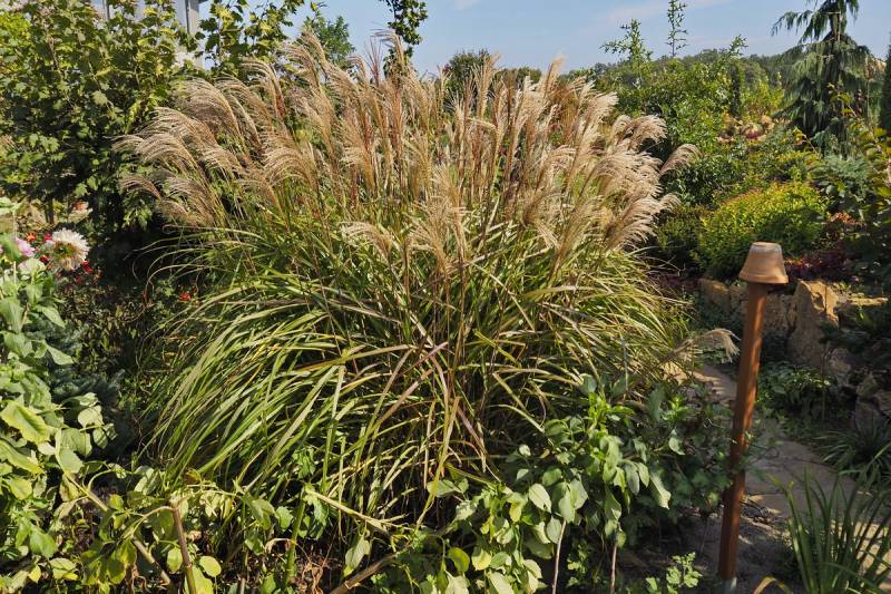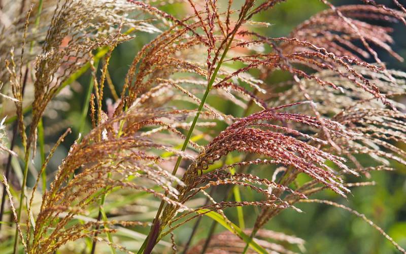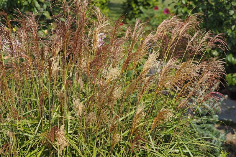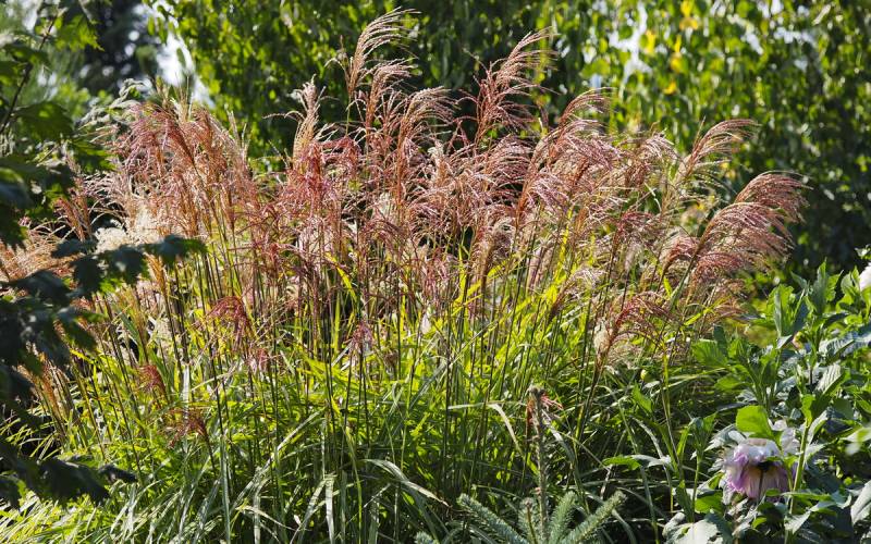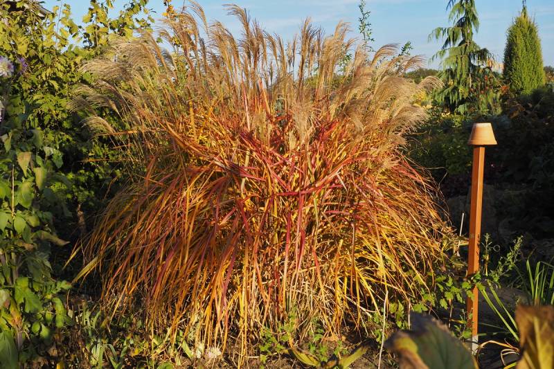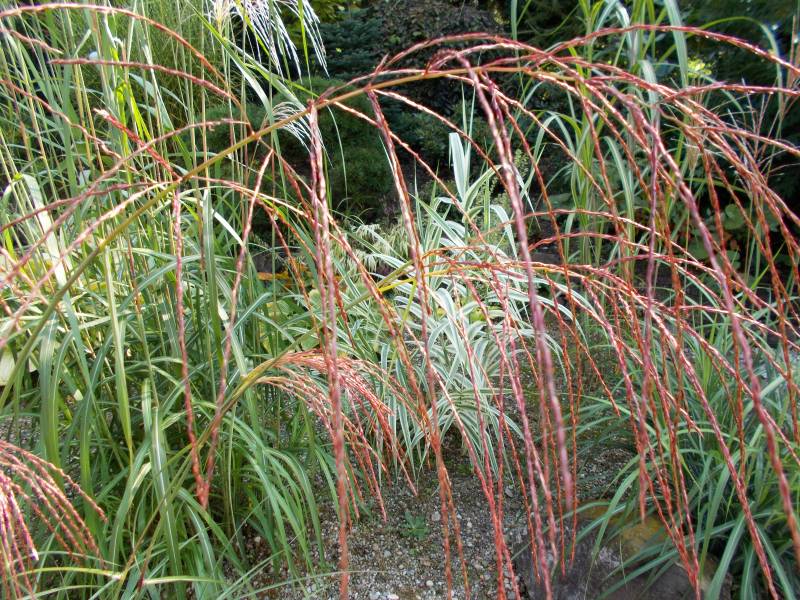 Wysokość: raczej niski, z kwiatostanem do 1,70 m Liście: jasnozielone, wąskie, jesienią żółto - pomarańczowe, pokrój łukowaty Kwiatostany: ciemno-purpurowe przewieszające się karbowane, później łapią pomarańczowe akcenty, przekwitając jaśnieją. Kwitnie bardzo obficie od końca sierpnia. Wymagania: ziemia umiarkowanie żyzna i umiarkowanie wilgotna... stanowisko słoneczne Mrozoodporność: strefa 5b