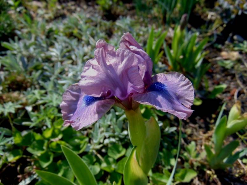 Iris balkana. Gatunek dorastający do trzydziestu cm wysokości, wcześnie kwitnący irys, o kwiatach występujących w dwóch kolorach - żółtym i purpurowym. Ma charakterystycznie wysoko sklepioną kopułę i podwijające się płatki dolne. Na początku XX wieku był namiętnie krzyżowany z innymi gatunkami irysów, jest uznawany za jednego z protoplastów irysów SDB.