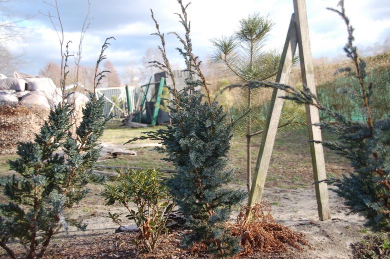 Po 10 latach uprawy krzew dorasta do 0,3 metra wysokości i 0,5 metra średnicy. Pędy i gałęzie są krótkie, gęsto ułożone, pokryte niebieskimi, kłującymi igłami