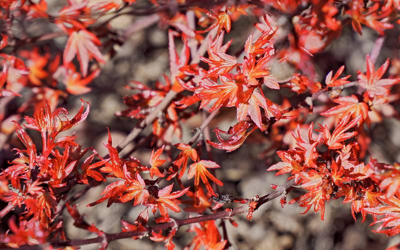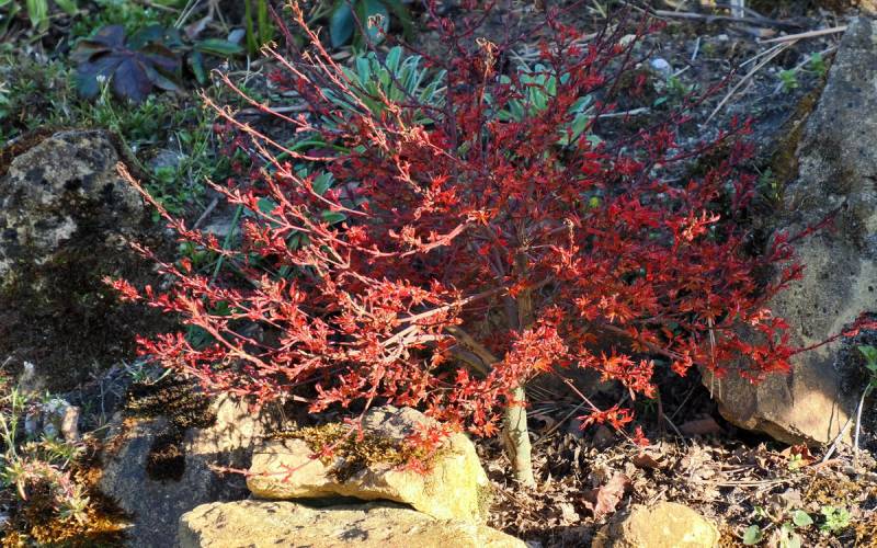 Beni Hime to karłowy klon o kompaktowym, zwartym rozmiarze i jaskrawoczerwonych młodych przyrostach. W ciągu 10 lat zazwyczaj dorasta do około 90-120 cm wysokości i 60-90 cm szerokości Pokrój: gęsty, krzaczasty, mocno zwarty o zaokrąglonym pokrój; idealnie nadaje się do małych ogrodów, pojemników i uprawy bonsai Liście: drobne, dużo mniejsze od gatunku, głęboko klapowane. młode o wyrazistym, czerwonym odcieniu, później delikatnie zielenieją; kontrast między młodymi przyrostami i dojrzałymi listkami nadaje mu pazura przez cały sezon, jesienią przebarwiają się na czerwono. Stanowisko: najlepiej półcieniste, osłonięte od zimowych wiatrów, strefa mrozoodporności: 6 Gleba: żyzna, przepuszczalna, wilgotna, o odczynie lekko kwaśnym z dobrym drenażem
