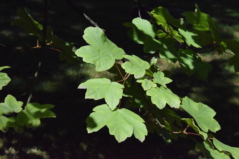 Pochodzenie: występuje na stanowiskach naturalnych w Ameryce Północnej, rośnie w wilgotnych, skalistych glebach nad brzegami rzek, wąwozami, lasami i klifami. Wymagania : preferuje glebę umiarkowanie wilgotną do wilgotnej, dobrze zdrenowaną, o lekko kwaśnym odczynie, ale jest tolerancyjny na suszę i zacienienie. Wielkość: na stanowiskach naturalnych dorasta do 8-9 m wysokości. Pokrój: średniej wielkości drzewo, często wielopniowe o dość regularnej, kulistej koronie Liście: dł. 5-9 cm, szerokie, o falistych lub grubo ząbkowanych krawędziach. Jesienią liście zmieniają kolor od jaskrawego żółtego przez pomarańczowy do głębokiej czerwieni. Mrozoodporność: dobra (strefa 5) Uwagi: niektórzy botanicy klasyfikują A.leucoderme jako podgatunek klonu cukrowego: A. saccharum subsp. leucoderme.