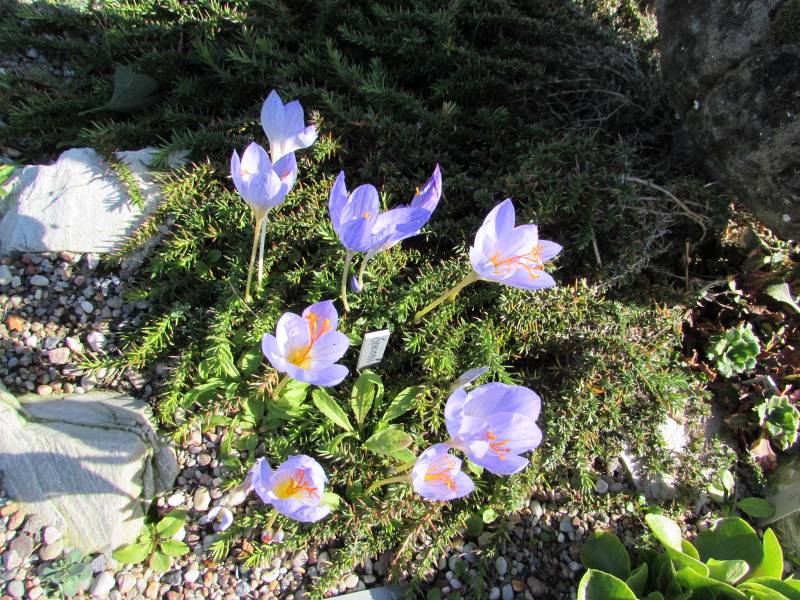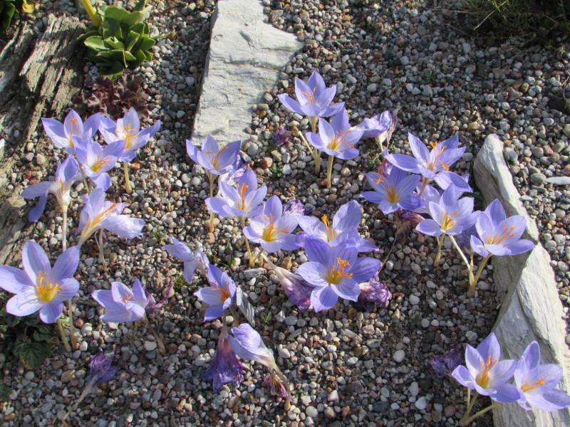 Kwiaty lila-niebieskawe, lila-różowe, a nawet białe, sześciopłatkowe pojawiają się w IX - X.