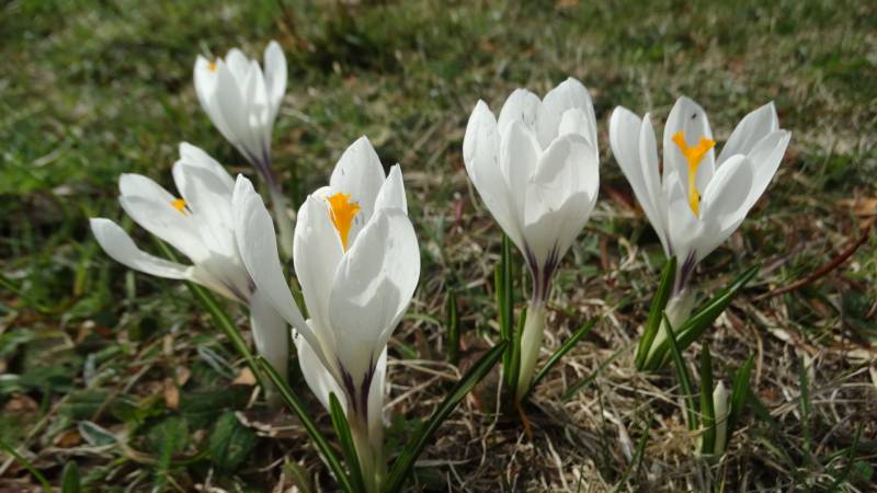 Krokus wiosenny (Crocus vernus) 'Jeanne d'Arc' to ładna odmiana i utrzymuje się w ogrodzie. Kilka w nowym miejscu