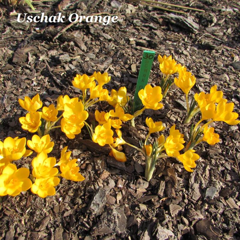 Krokus złocisty Uschak Orange rozpoczyna u mnie krokusowy sezon 2024. Kiedy wróciłem z pracy był już ładnie otwarty do słońca, ale zanim wyszedłem z aparatem kwiatuszki już się zamknęły.