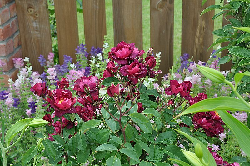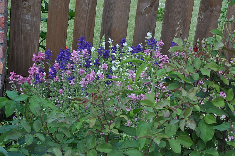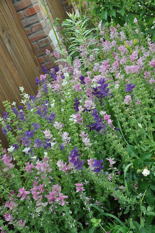 szałwia trójbarwna w ogrodzie markity, w towarzystwie liliowca