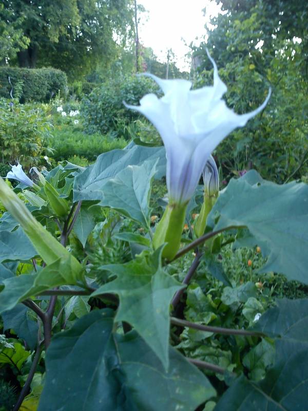 Kwiaty: białe, rzadko niebieskofioletowe, duże, lejkowate, wzniesione, zapylane przez ćmy