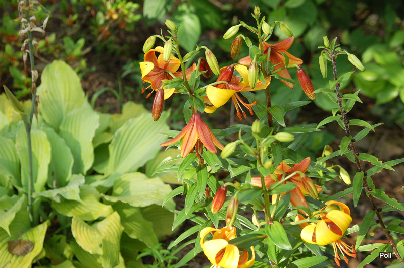 Muszę Cię zasmucić Poll, że kwiatu praktycznie nie widać.Widać tylko pokrój lilii i mogę tylko powiedzieć, że z pewnością jest to mieszaniec azjatycki z grupy 1c. Reszty się nie podejmę. wydaje mi się, że rozpoznać ją może jedynie ktoś, kto też ją ma w swoim ogrodzie.
