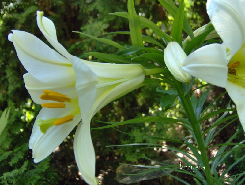Kwiaty: o kształcie trąbki, białe z żółtą gardzielą, o długości do 14 cm, na zewnątrz kwiaty jasne;