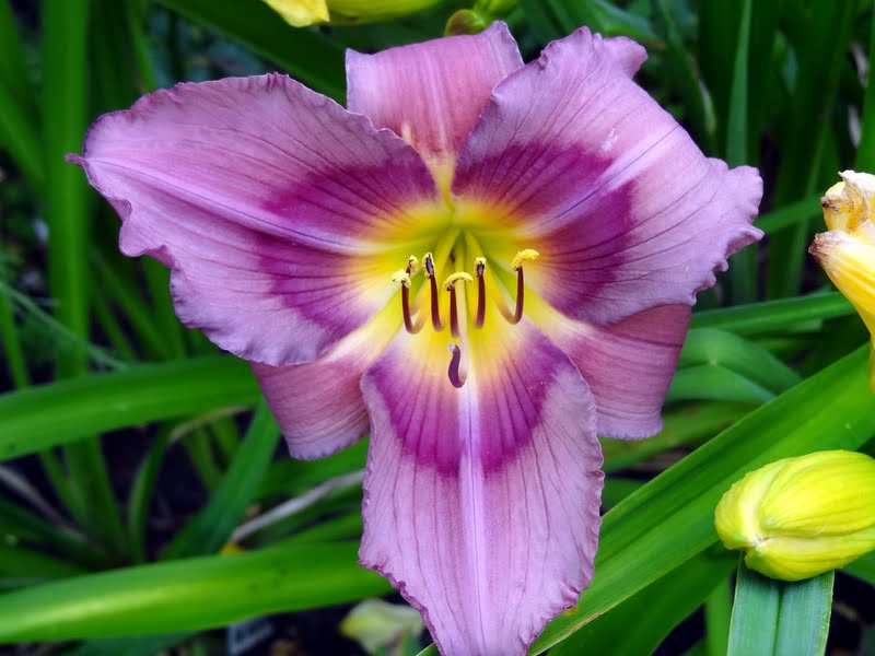 hodowca: Shooter, 1993 wysokość: 60-70 cm kwiat: 14cm w kolorze foletowo-różowym, z wyraźnym mocno różowym okiem i zielonym gardłem. Wykazują sporą zmienność w zależności od pogody. termin kwitnienia: lipiec-sierpień
