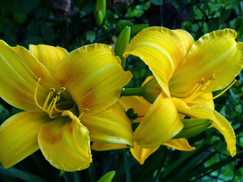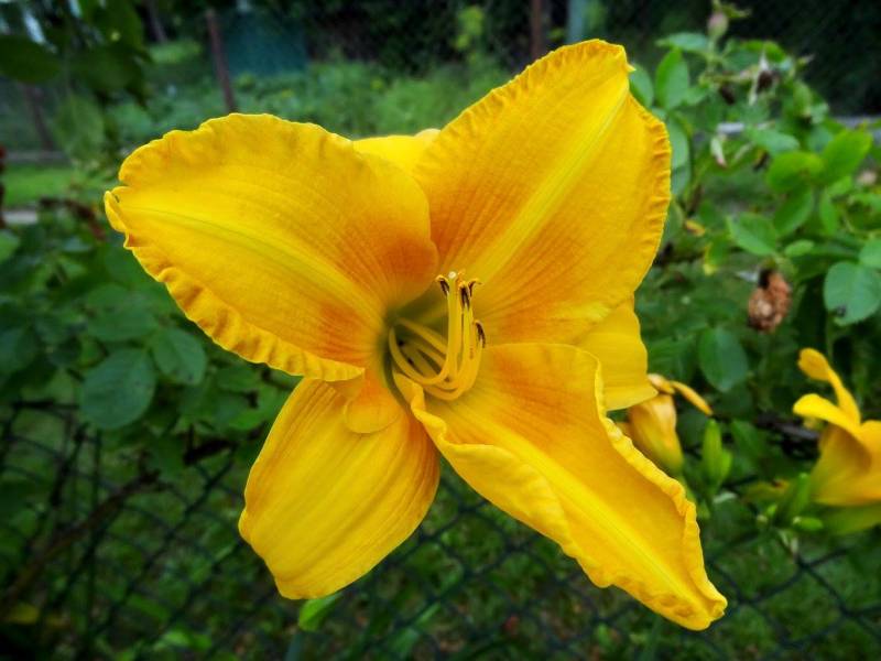 Kwiaty złoto-żółte z pomarańczowym okiem; 15 cm.