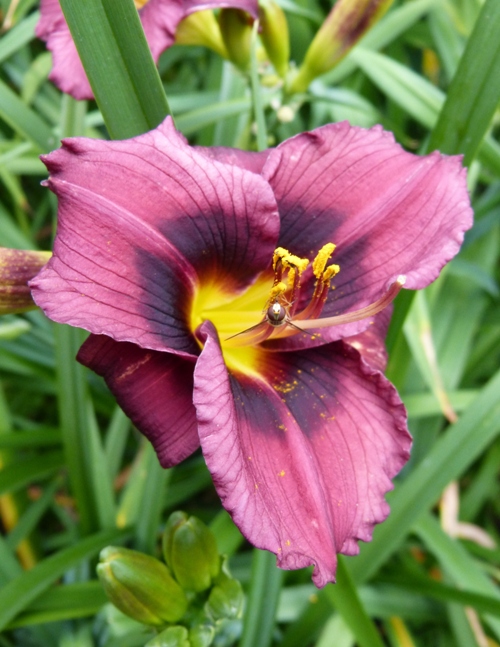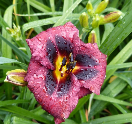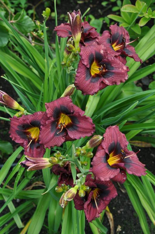hodowca: Shooter-E., 1993 wysokość: 50cm kwiat: niewielki, ok. 10cm, w kolorze ciemnej purpury lub bordo z czarnym okiem i niewielką, żółtą gardzielą termin kwitnienia: lipiec-sierpień