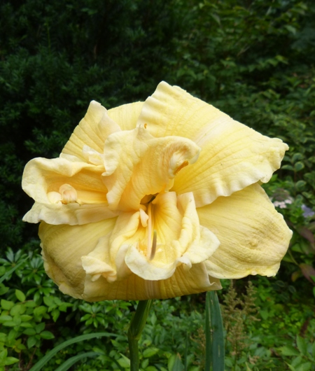To piękna odmiana, godna wszelkiej pochwały, ponieważ nie dość, że kwitnie na wysokich łodygach, ma urocze, duże, pełne, poskręcane kwiaty w ciekawym budyniowym kolorze, to jeszcze cudnie pachnie jakby fiołkami. To jeden z najsilniej pachnących u mnie liliowców (dwa inne to Hyperion i H. citrina). Co prawda, nie szaleje z liczbą kwiatów ale i tak każdego roku czekam, żeby nacieszyć się urodą tych niezwykłych kwiatów. W przyszłym roku zrobię fotę i wstawię.