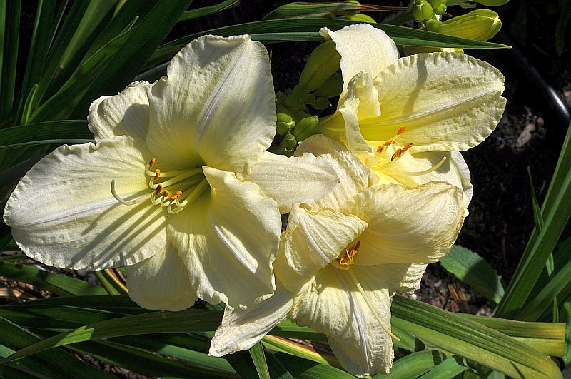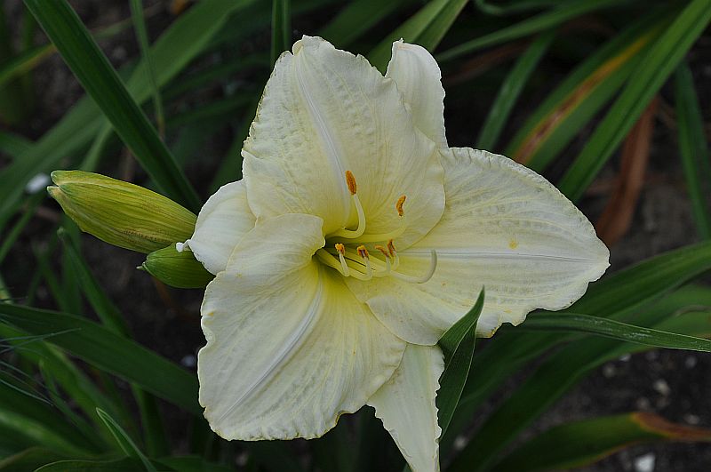 hodowca: Durio, 1977 wysokość: 60-70cm kwiat: o średnicy 15cm w kolorze kremowym z lekkim limonkowym odcieniem i zielonkawą gardzielą. termin kwitnienia: czerwiec-lipiec, może powtarzać kwitnienie