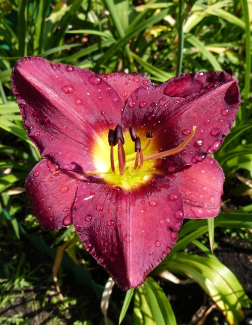kwiat ok. 12 cm, głęboko czerwony z aksamitnym czerwonym okiem przechodzącym do jasno żółtej gardzieli. Taki opis koloru jest w AHS (Deep red with velvet red eyezone blending into a pale yellow throat). Zdjęcia tej odmiany zamieszczone w różnych portalach w necie są bardzo podobne do siebie ale z pewnością kwiaty nie są czerwone. Bez słońca są bardziej podobne do Minstrel Boya czy nawet do Beli Lugosi a dopiero w pełnym słońcu ładnie się wybarwiają ale najwyżej na kolor bordowy