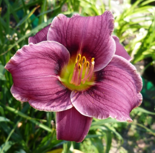 kwiat 7 cm, purpirowy z białym brzegiem i zieloną gardzielą