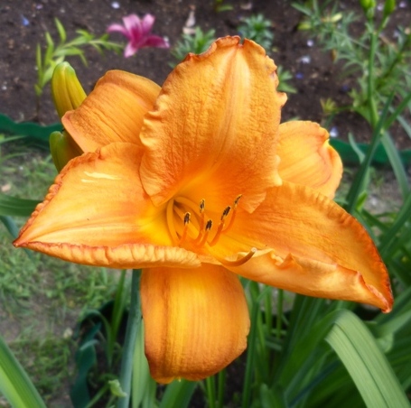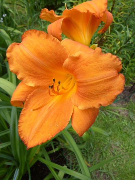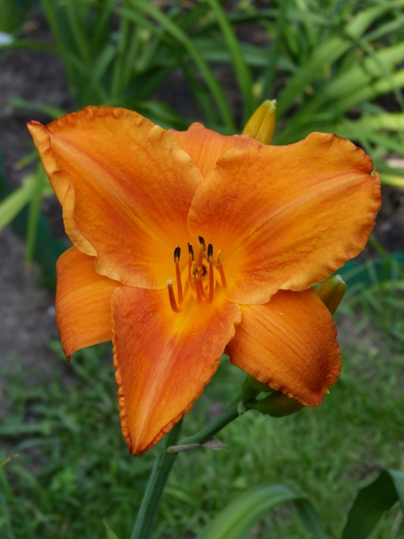 kwiat 12 cm, bursztynowo złoty z ciemnoczerwoną cieniutką lamówką płatków z jasno zieloną gardzielą