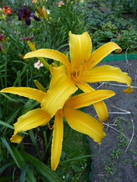 Kolor kwiatów ciepły żółty, na petalach ledwo widoczne jaśniejsze żebro. Prawdziwe słoneczko górujące nad innymi kwiatami...