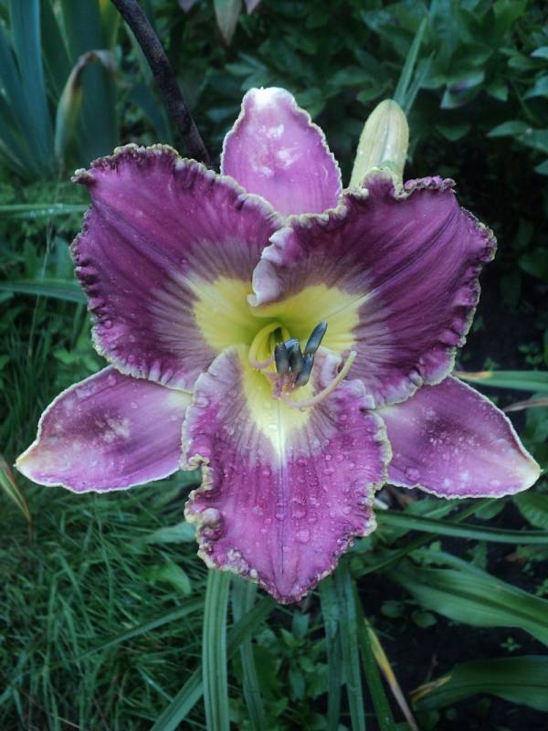 Hodowca: Rice-JA, 2009 Wysokość: ok 70 cm Kwiaty: kwiaty w kolorze lawendowo-szarym ,duże , rozmyte srebrno fioletowe oko gardziel żółta , Petale szerokie, obramowane falbanką w kolorze oka i żółtym marginesem. Wielkość kwiatu ok 15 cm. Stanowisko: słoneczne do półcienistego. Mrozoodporność: zimuje bez okrycia .