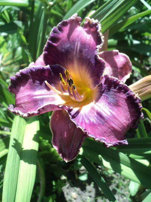 Kwiaty: kwiaty w kolorze fiołkowo-różowym , z fioletowym ,cieniowanym okiem i platynowo -fioletową falbanką na brzegach płatków , gardło żółto-zielone. . Wielkość kwiatu ok 11 cm.