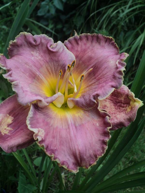 Hodowca: Grace-Smith ,2004 Wysokość: ok 85 cm Kwiaty: kwiaty w kolorze lawendowym ,z niebieskim znakiem wodnym i niebiesko -fioletowym okiem , gardło żółte , płatki wykończone fioletowo-zieloną falbanką . Wielkość kwiatu ok 15 cm. Stanowisko: słoneczne do półcienistego. Mrozoodporność: zimuje bez okrycia . Uwagi: