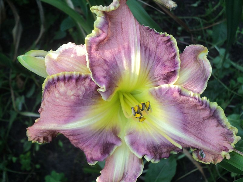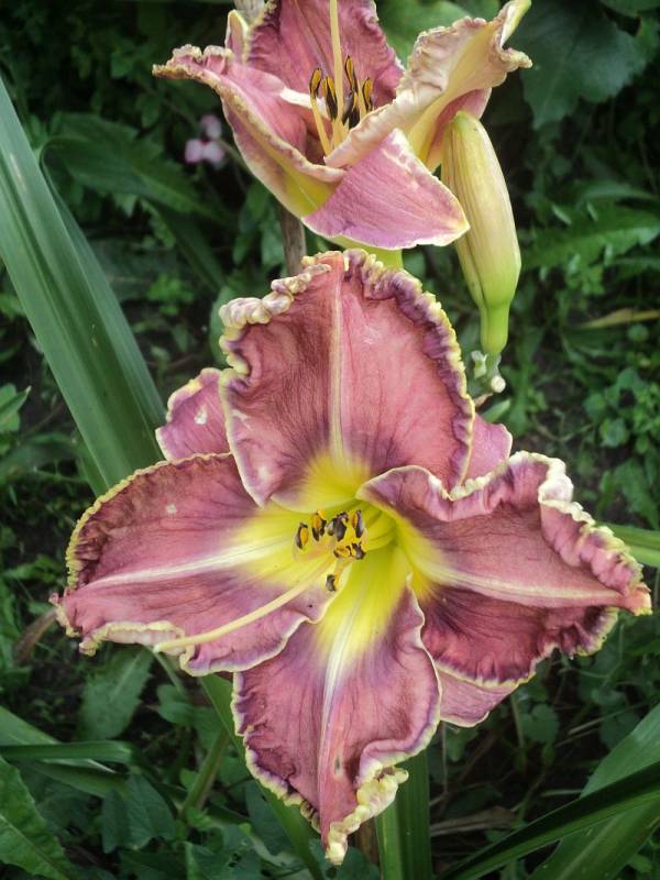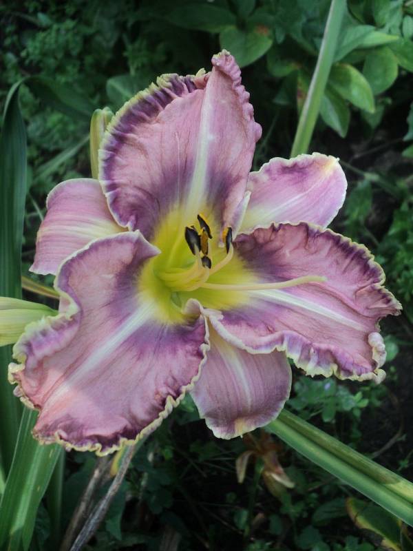 Hodowca: Lambertson, 2006 Wysokość: ok 60cm Kwiaty: kwiaty w kolorze fioletowo-jagodowym ,z fioletowo - niebieskim okiem , gardło żółto-zielone .Krawędź płatków wykończona falbaną w kolorze oka i zieleni.. Wielkość kwiatu ok 15 cm. Stanowisko: słoneczne do półcienistego. Mrozoodporność: zimuje bez okrycia . Uwagi;